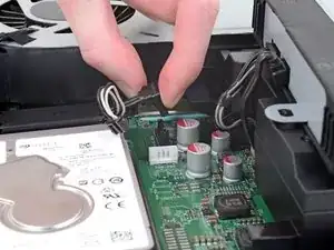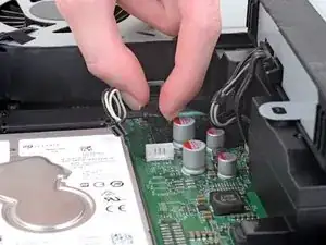 Аккуратно отсоедините пальцами два набора проводов, соединяющих привод с материнской платой.