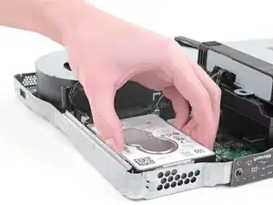 Поднимите сборку жёсткого диска из верхней металлической крышки.