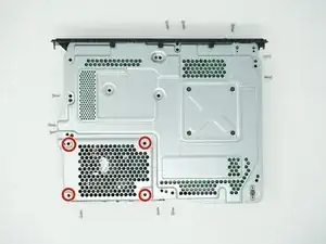 С помощью отвёртки Torx T10 выкрутите четыре меньших винта 11 мм в нижнем левом углу металлической крышки.