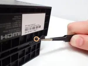 Используйте отвёртку Torx T10, чтобы выкрутить 13‑мм винт, который находится под и слева от разъёма питания.