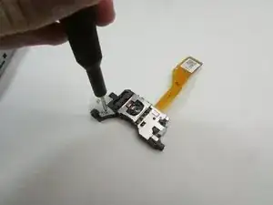Отвинтите крестообразный винт, закрепляющий белую пластиковую скобу на узле линзы.