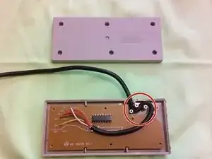 Поднимите плату прямо вверх и выньте её из контроллера. Переверните плату, чтобы получить доступ к точкам пайки кабеля.