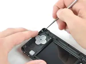 Чтобы уменьшить вероятность их потери во время ремонта, вы можете снять две тонкие прокладки под джойстиком Circle Pad.