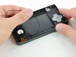 Поднимите джойстик Circle Pad с материнской платы и положите его на спинку так, чтобы был доступен разъём шлейфа.