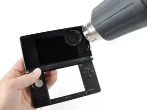Подогрейте кромки передней панели верхнего экрана феном или термофеном, чтобы смягчить клей, удерживающий её на рамке дисплея.