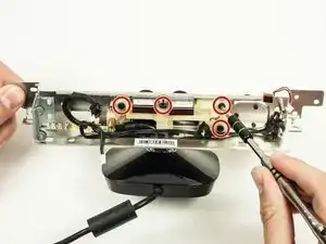 Отклейте две наклейки Xbox 360 с нижней части корпуса, чтобы обнаружить два спрятанных винта.