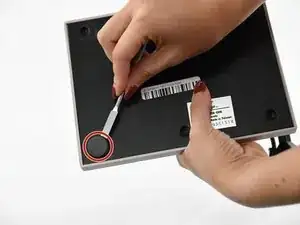 Удалите четыре клеевых подушечки с нижней части устройства.