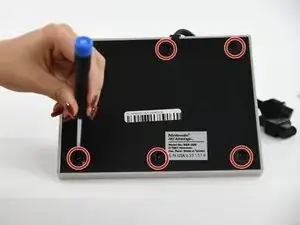 Удалите шесть винтов длиной 8 мм с нижней части устройства с помощью отвертки Phillips #0.
