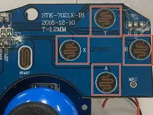 Заключительная проверка — осмотреть компоненты схемы кнопок действия. На правой стороне контроллера находятся четыре круглых элемента для кнопок действия. Убедитесь, что цепь не повреждена.