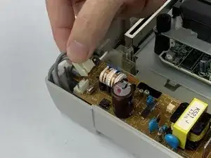 Отключите разъём кнопки питания на плате блока питания. При необходимости используйте инструмент для вскрытия iFixit.