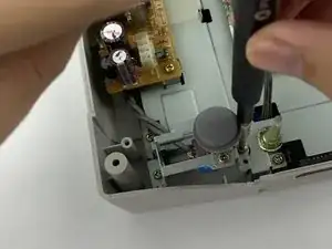 Снимите металлический винт JIS#1 длиной 12,3 мм, фиксирующий плату блока питания.