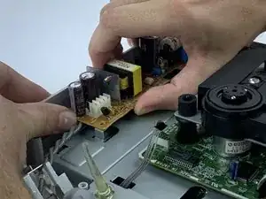 Поднимите плату блока питания из её гнезда, следя за выступами, которые соединяют её с материнской платой. Потребуется некоторое усилие, но будьте осторожны при подъёме или встряхивании платы блока питания.