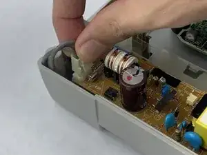Снимите пластиковую опору, чтобы освободить провод между платой блока питания и кнопкой.