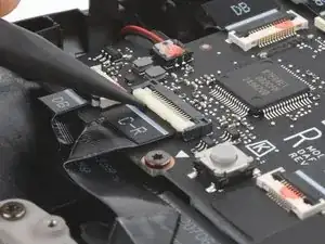 Поднимите маленький фиксирующий язычок на ZIF‑разъеме крестовины (D‑pad), расположенном в правом верхнем углу.