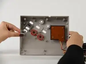 Удалите серебряную скобу с верхней части печатной платы.