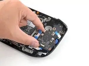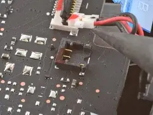 Возьмите кабель батареи за петлю и потяните прямо от платы, чтобы отключить его.