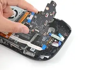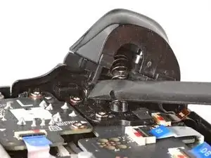 Используйте заострённый конец лопатки, чтобы приподнять маленькую запорную планку на ZIF‑разъёме кабеля джойстика.