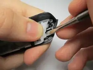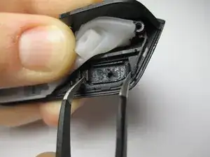 Схватите пластиковые язычки с обеих сторон кнопки пинцетом.