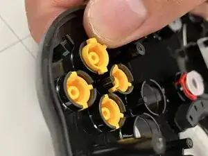 Убедитесь, что каждая жёлтая кнопка возвращена в правильный паз при установке.