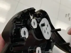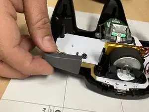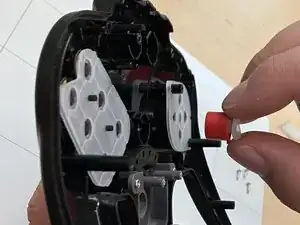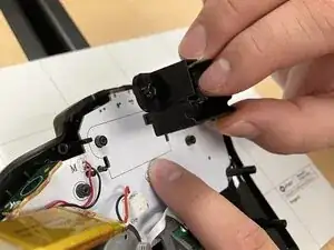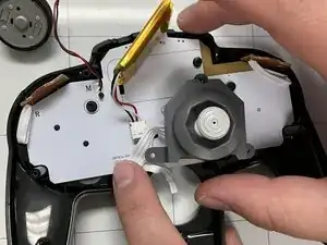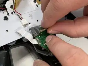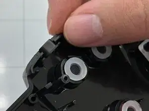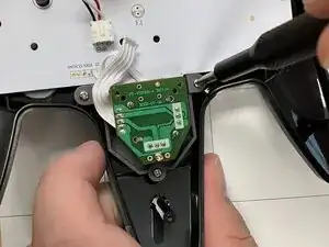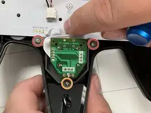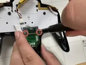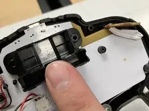 Используйте крестовую отвёртку №1, чтобы удалить два винта длиной 7,2 мм на плате кнопки Z, которая усиливает плату джойстика.