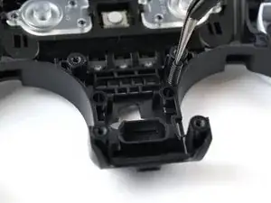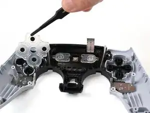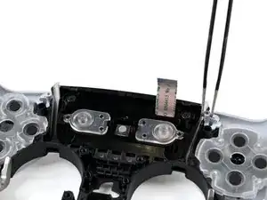 Используйте изогнутый пинцет, чтобы вынуть две пружины возле выреза под кнопку PS.