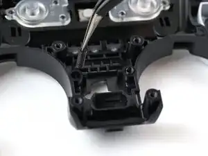 Держа сборку триггера над контроллером, используйте пинцет, чтобы отсоединить ленточный кабель сборки триггера ленточный кабель, захватив тяговую вкладку и потянув от разъёма.