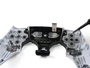 С помощью пинцета или пальцев снимите силиконовые прокладки за кнопками направления и игровыми кнопками.