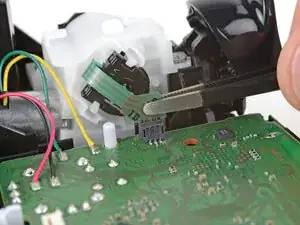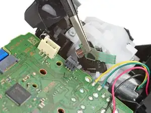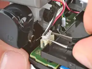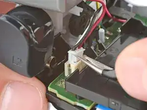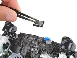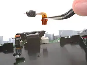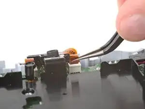 Используйте пинцет, чтобы захватить жесткую пластиковую часть шлейфа правого триггера и вытяните кабель прямо из разъема, чтобы отключить его.