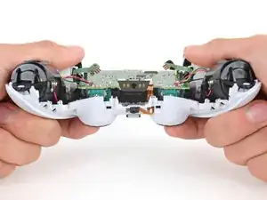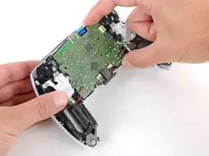 Используйте пальцы, чтобы аккуратно протолкнуть джойстики через их вырезы в корпусе, чтобы отделить материнскую плату.