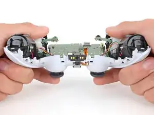 Удерживайте контроллер пальцами и используйте большие пальцы, чтобы приподнять задний корпус от контроллера, чтобы полностью отделить его.