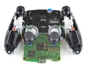 Используйте отвертку Phillips, чтобы снять два винта длиной 6.4 мм за кнопками L1 и R1.