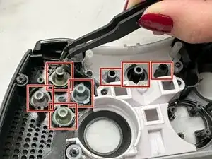Вытяните старые кнопки из корпуса контроллера с помощью изогнутых пинцетов.
