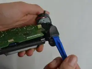 Удалите винт длиной 6,43 мм, соединяющий плату с внутренними компонентами контроллера, используя крестовую отвертку.