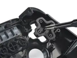 Используйте крестовую отвёртку, чтобы выкрутить два винта длиной 6,8 мм, удерживающих плату аналоговых стиков.