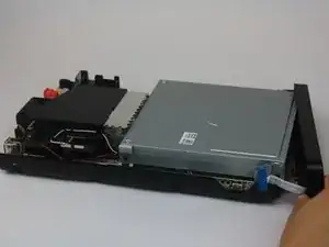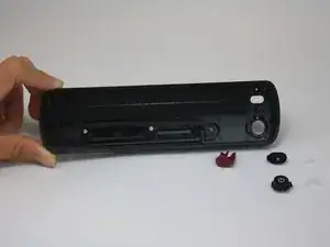 После отвинчивания удалите черные кронштейны, которые удерживают кнопку питания, кнопку извлечения и кнопку синхронизации на месте.