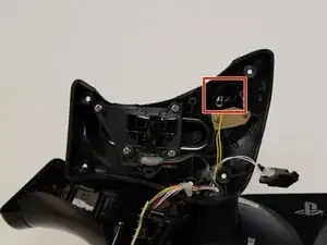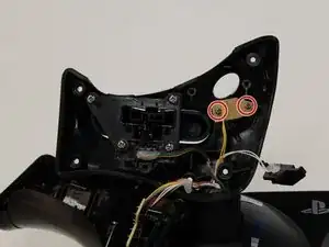 Отодвиньте панель, закрывающую кнопку R2, от ручки управления.