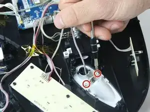 С помощью отвертки с головкой J1 удалите одиннадцать серебряных винтов длиной 5 мм (обведенных красным) вокруг белой панели.