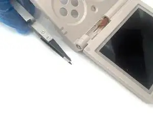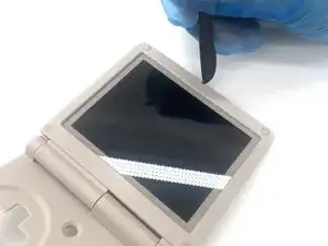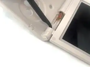 Поместите конец лопатки между двумя слоями крышки экрана и подденьте её, чтобы открыть.