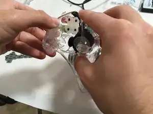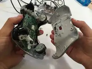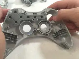 Разомкните корпус контроллера. При желании аккуратно нажмите на аналоговый стик, чтобы выбить заднюю половину. (Некоторые кнопки могут выпасть.)