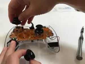 Чтобы снять аналоговый стик, потяните его вертикально вверх, оторвав от основания.