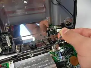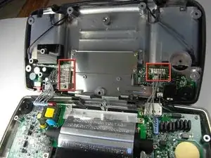 Осторожно отключите 2 коннектора с белыми наконечниками на верхней крышке.
