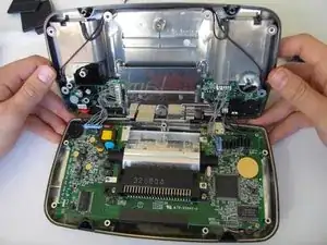 Осторожно откройте корпус, развернув его над верхней частью Sega Game Gear.