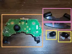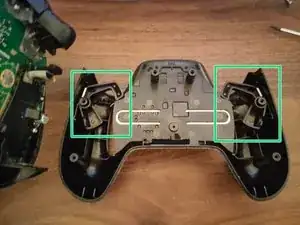 Если вы НЕ видите прямоугольную пластиковую деталь, лежащую на кнопке бампера на плате, скорее всего, бампер вашего контроллера сломан.