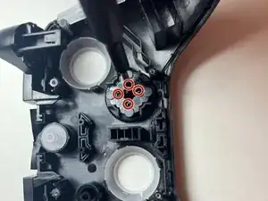 Используйте отвертку Phillips #00, чтобы выкрутить четыре винта 4 мм, которые фиксируют крестовину к корпусу контроллера.