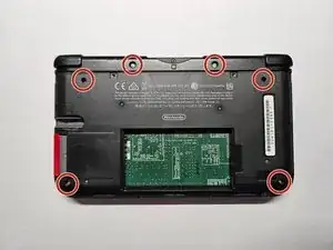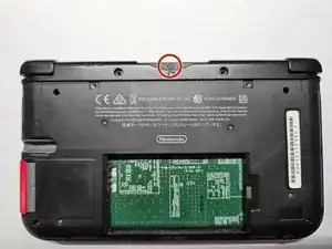 Отвинтите винт длиной 2,3 мм, расположенный над слотом для игрового картриджа, с помощью отвёртки Phillips #00.