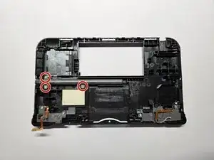 Отвинтите три золотистых винта длиной 2,3 мм, расположенные вокруг отсека для стилуса, с помощью отвёртки Phillips #00.