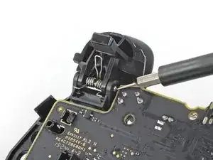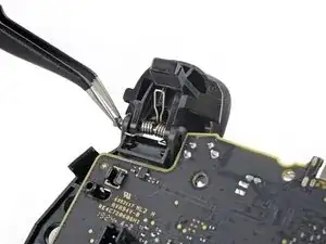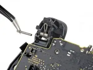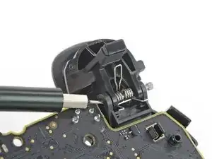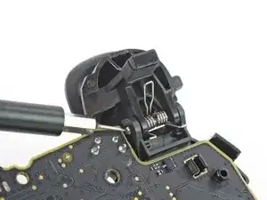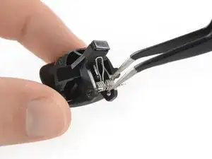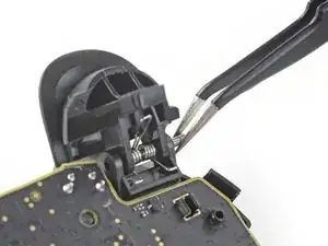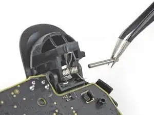 Используйте пинцет, чтобы снять пружину с левой кнопки спуска.