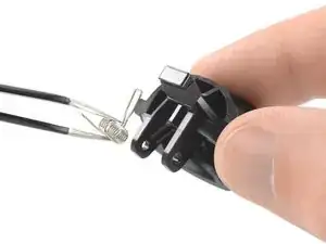 Наклоните монтировку вверх и одновременно вдавите её в зазор между корпусами, чтобы поддеть пластиковую защёлку. Вы должны услышать щелчок, когда защёлка откроется.