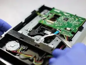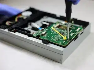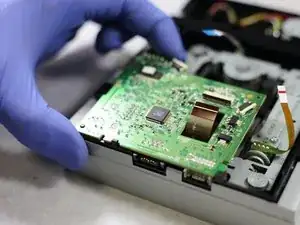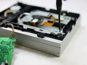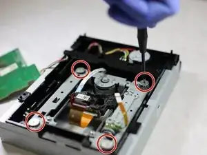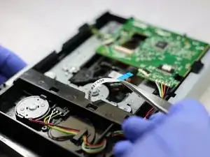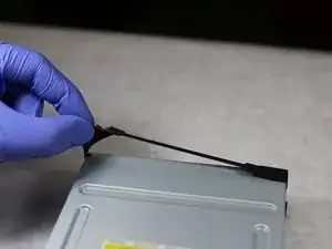 Чтобы добраться до лазера и заменить его, сначала нужно снять дисковый привод.