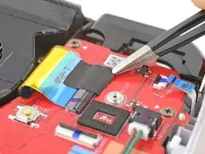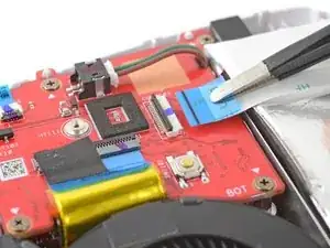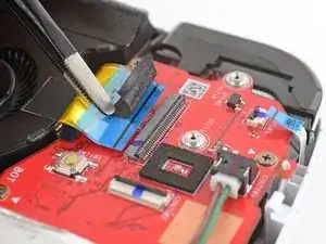 Пинцетом оторвите ленту, покрывающую ZIF‑разъём шлейфа межплатного соединения основной платы.